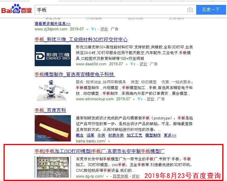 手板廠 百度(PC)自然排名第1名,360搜索、搜狗、手機搜索等均也有比較好的排名...